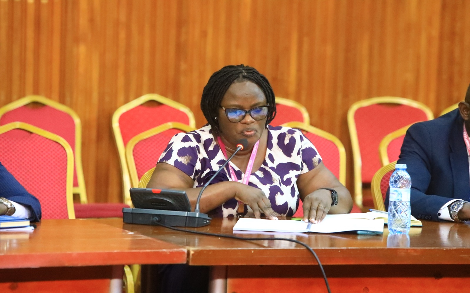Hon. Alanyo (R) and other members of the committee during the meeting